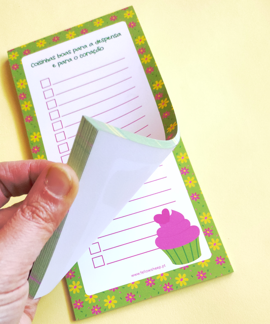 Bloco de lista de compras ilustrado com padrão Cupcake