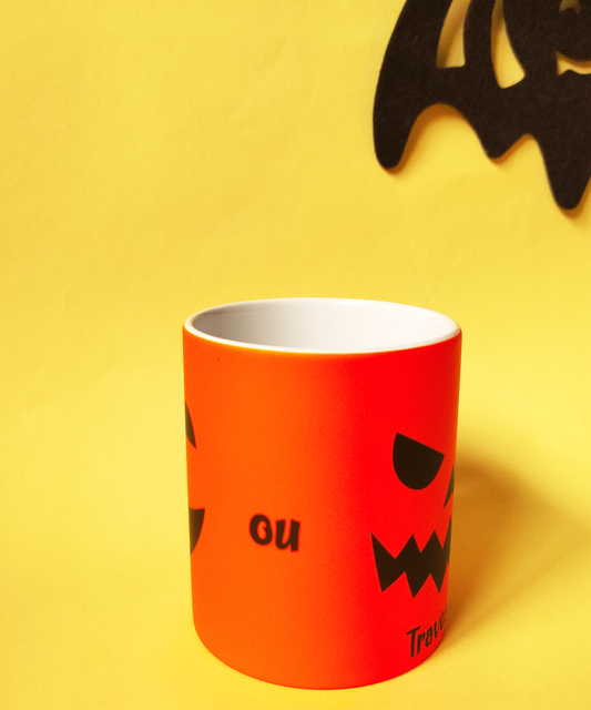 Caneca Fluorescente Laranja "Doçura ou Travessura"